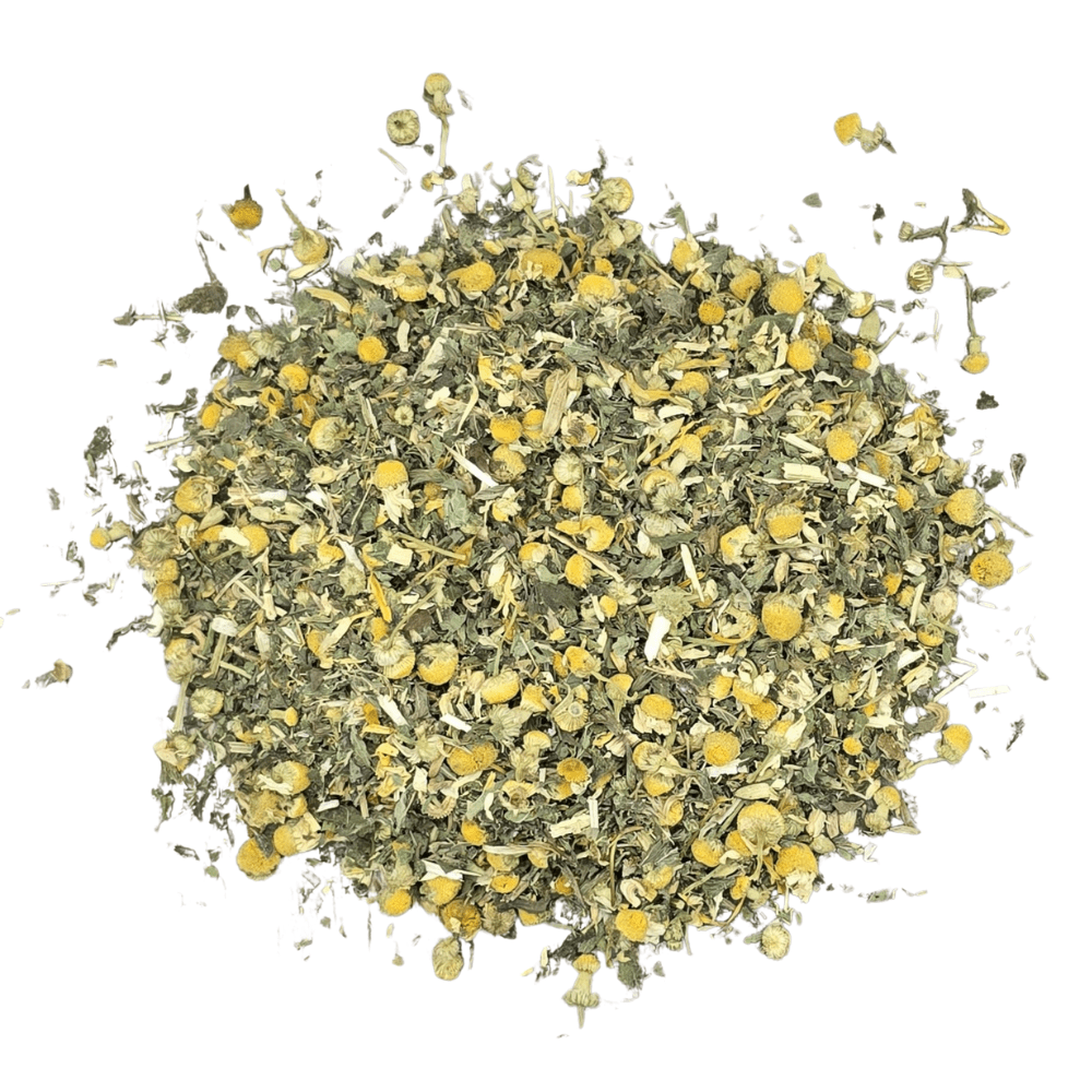 - Er kann durch die harmonische Kombination aus Kamille, Melisse, Schafgarbe, Pfefferminze, Süßholzwurzel und Ringelblume beruhigend wirken und kann helfen, Stress abzubauen.