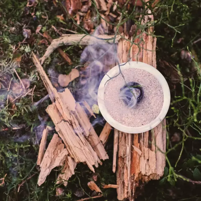Es empfiehlt sich, die Schale mit Räuchersand und Räucherkohle zu benutzen. Legen Sie eine Schicht Sand in die Schale, darauf die angezündete Kohle. Durchglühen lassen, bis diese nicht mehr sprüht. Auf die glühende Kohle legen Sie das gewählte Räucherwerk für die individuelle Anwendung und Ihre persönliche rituelle Räucherung.